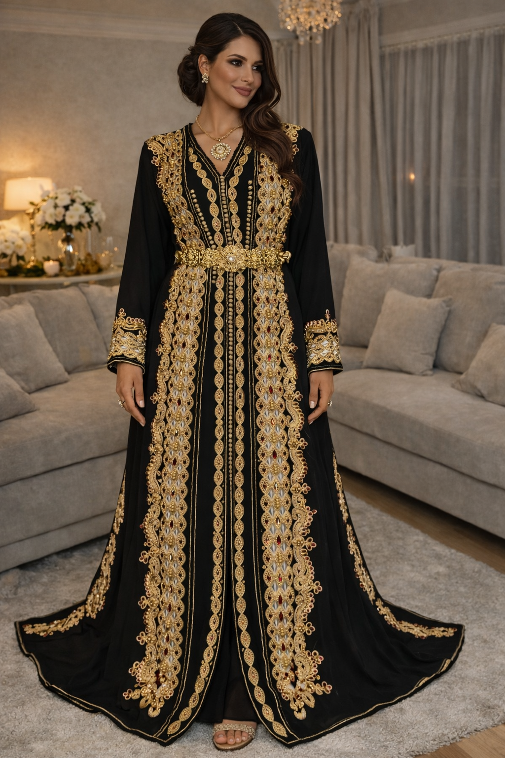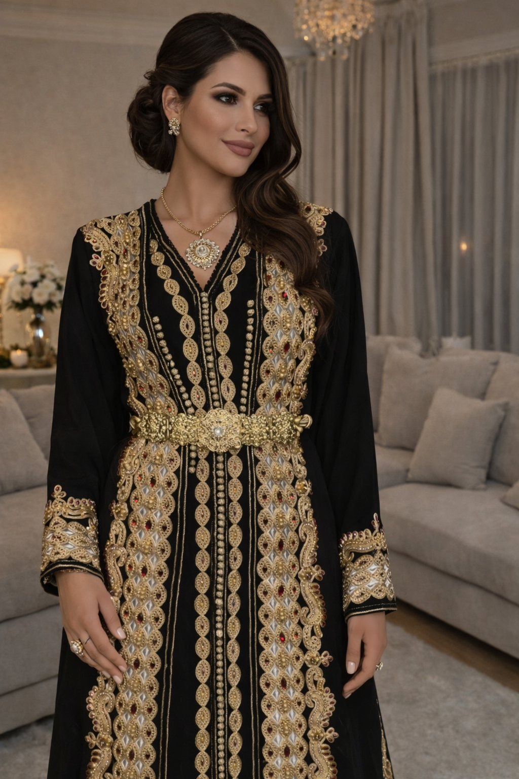 ✨👑Finitions haut de gamme en sfifa tressée en الصمّ الحُر (fil de soie artisanal) et a9ad traditionnels en الصمّ الحُر pour un rendu authentique et luxueux.