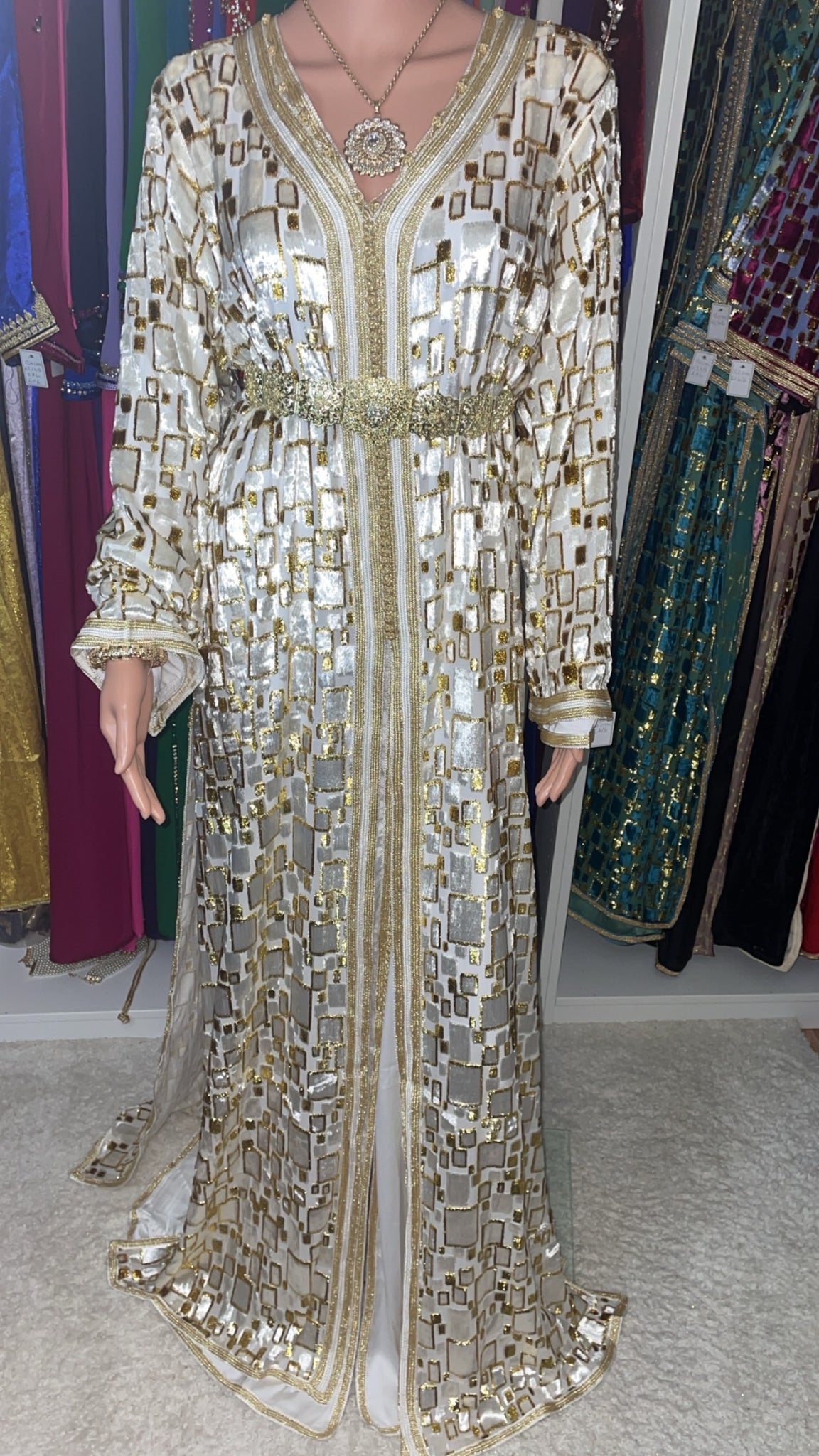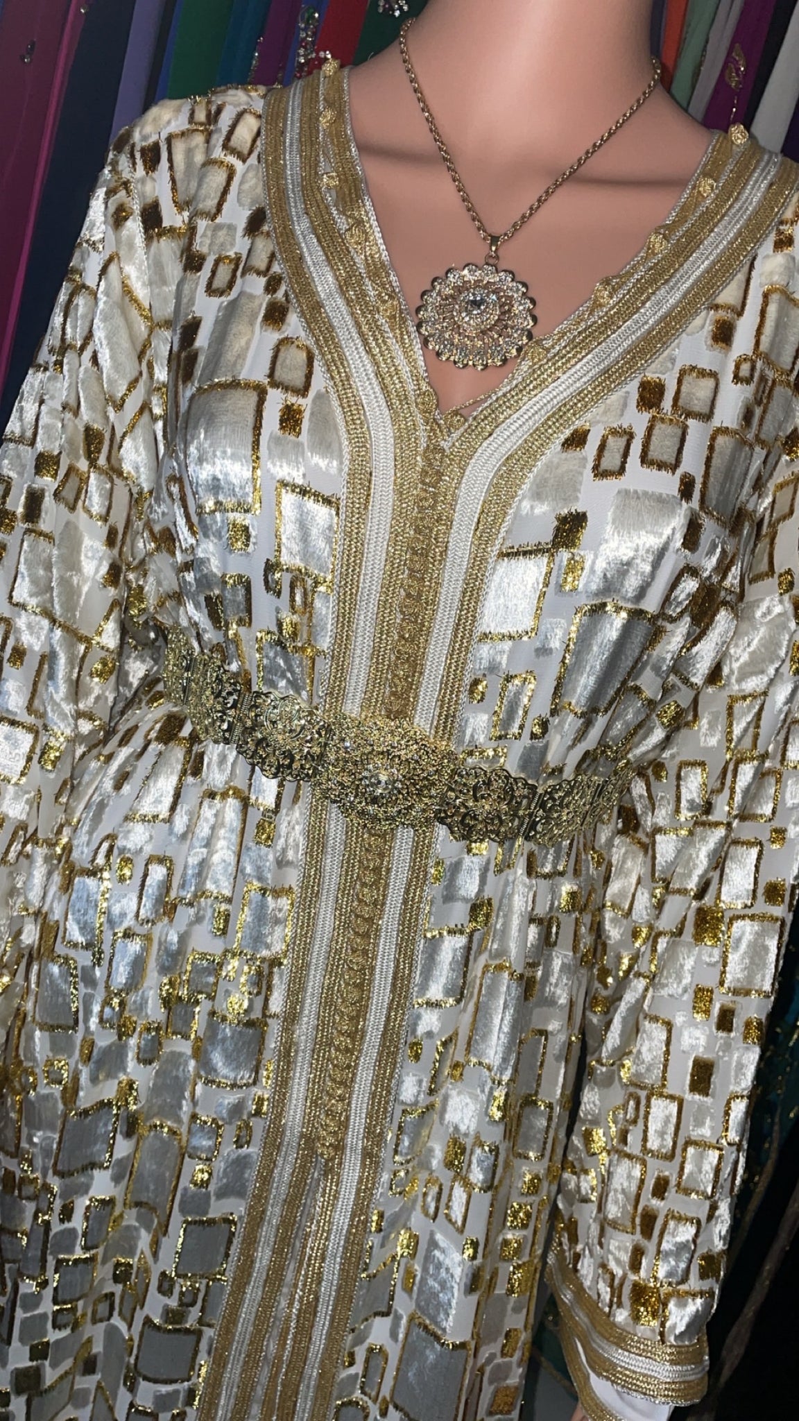 Ceinture mdamma dorée richement ornée qui sublime la taille et apporte une allure royale 👑