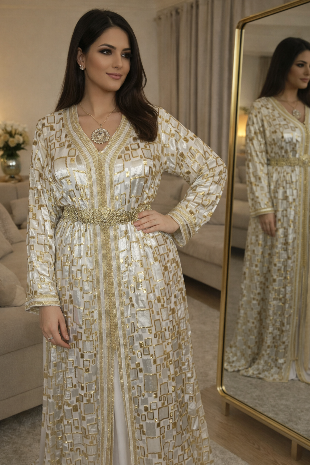Sublime takchita en tlija blanche intensément lumineuse  avec de délicates touches dorées scintillantes ✨